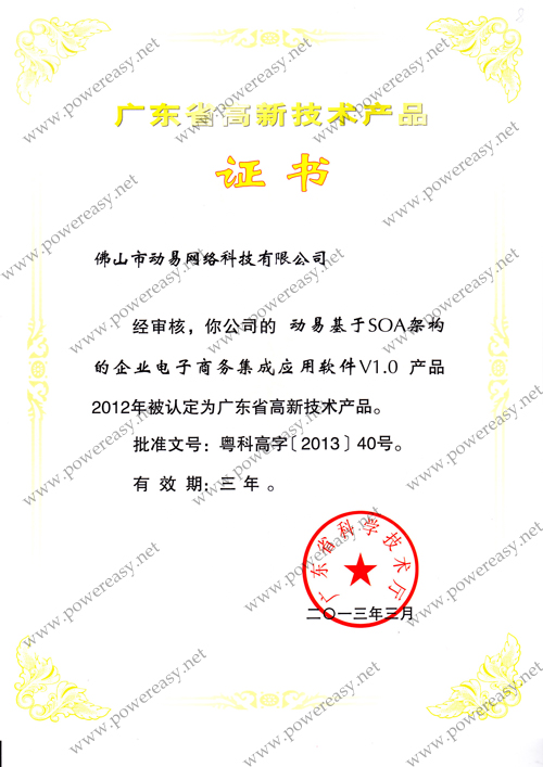 2012廣東省高新技術(shù)產(chǎn)品-動(dòng)易基于SOA架構(gòu)的企業(yè)電子商務(wù)集成應(yīng)用軟件V1.0