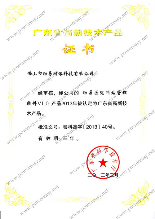 2012廣東省高新技術(shù)產(chǎn)品-動(dòng)易醫(yī)院網(wǎng)站管理軟件V1.0