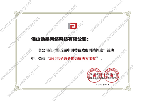 2010電子政務(wù)優(yōu)秀解決方案獎(jiǎng)