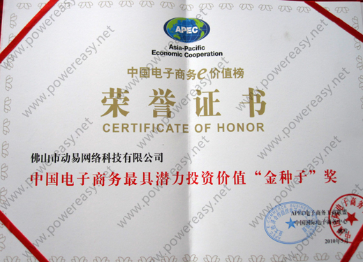 中國(guó)電子商務(wù)最具潛力投資價(jià)值“金種子”獎(jiǎng)