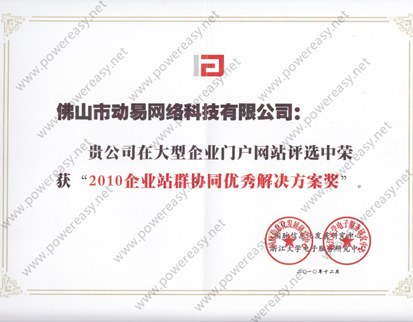 2010企業(yè)站群協(xié)同優(yōu)秀解決方案獎(jiǎng)