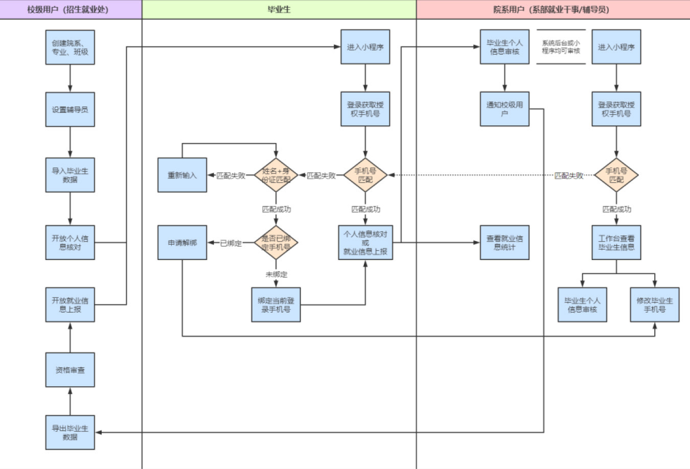 這一復(fù)雜但必要的登錄邏輯設(shè)計(jì),可靈活應(yīng)對(duì)畢業(yè)生因工作變動(dòng)等原因可能導(dǎo)致的手機(jī)號(hào)更新情況,從而保障系統(tǒng)的時(shí)效性與準(zhǔn)確性。