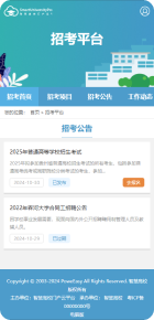 前臺支持顯示招生考試項(xiàng)目列表,點(diǎn)擊項(xiàng)目名稱查看招生考試項(xiàng)目詳情,招生考試項(xiàng)目詳情頁顯示相應(yīng)的招生班級列表,點(diǎn)擊班級名稱查看班級詳情。