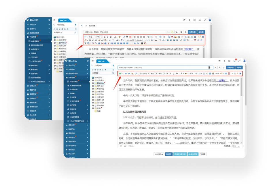 在線 HTML 編輯器是內(nèi)容管理系統(tǒng)的最核心功能之一,它采用與 Word 類(lèi)似的可視化編輯方式,實(shí)現(xiàn)對(duì)文章內(nèi)容的“所見(jiàn)即所得”的在線編輯效果。