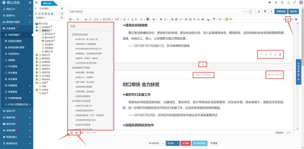 基于標(biāo)準(zhǔn)模式,增加了內(nèi)容分頁(yè)和內(nèi)容大綱(目錄)功能,主要用于文章內(nèi)容編輯。
