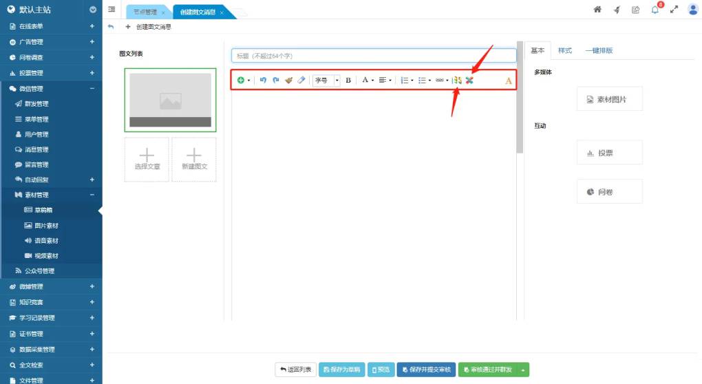 專(zhuān)為微信發(fā)布內(nèi)容編輯設(shè)計(jì),增加了調(diào)用第三方編輯工具的功能按鈕。