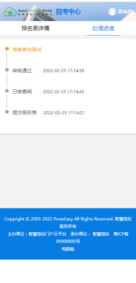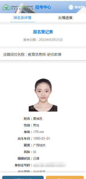 在報名表的上方,通過進度條顯示當前狀態(tài)、處理過程和結(jié)果,使得應(yīng)聘者(考生)和招聘負責人都能一目了然地了解報名表的進展情況。