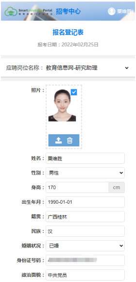此外,如果考生增參加過以往的招考項目,系統(tǒng)會自動復用之前的報名表信息,考生只需更新過期信息即可,極大減少了填寫工作的重復性。