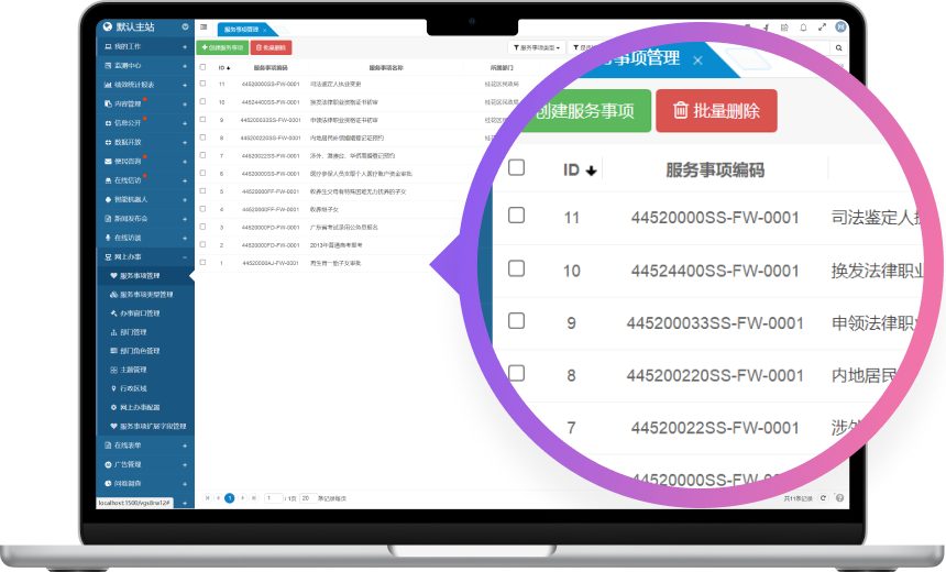 服務(wù)事項管理模塊功能全面且靈活,提供了豐富的操作選項以滿足不同管理需求。