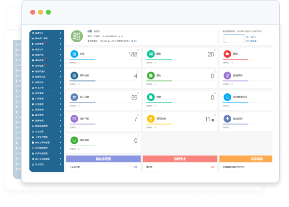 我的工作臺(tái)首頁(yè)依據(jù)用戶(hù)權(quán)限,集中展示各模塊的統(tǒng)計(jì)數(shù)據(jù)、待審核信息及監(jiān)測(cè)中心相關(guān)數(shù)據(jù),用戶(hù)可通過(guò)點(diǎn)擊相應(yīng)數(shù)字直接跳轉(zhuǎn)至對(duì)應(yīng)模塊進(jìn)行處理。