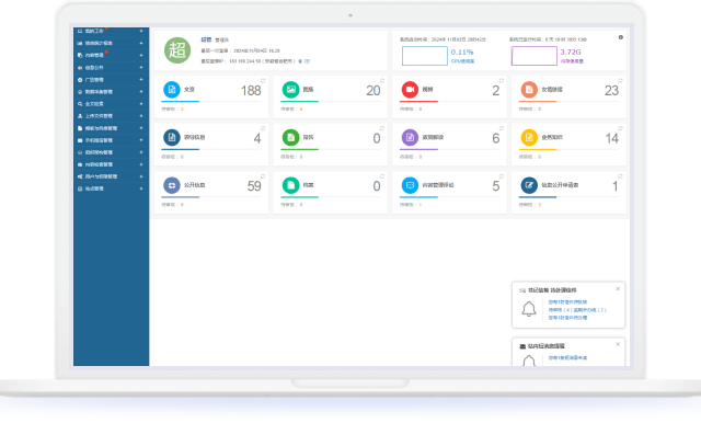 此外,右下角設(shè)有冒泡提示,實(shí)時(shí)提醒用戶(hù)各模塊的待處理任務(wù)和待審核信息,點(diǎn)擊提示即可快速進(jìn)入相應(yīng)模塊進(jìn)行處理。