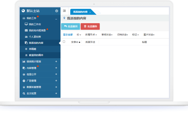 支持按內(nèi)容模型對(duì)被退回稿件進(jìn)行管理,每種內(nèi)容模型均精心設(shè)計(jì)了與之適配的列表頁(yè)與查看頁(yè),以提升管理效率與體驗(yàn)。