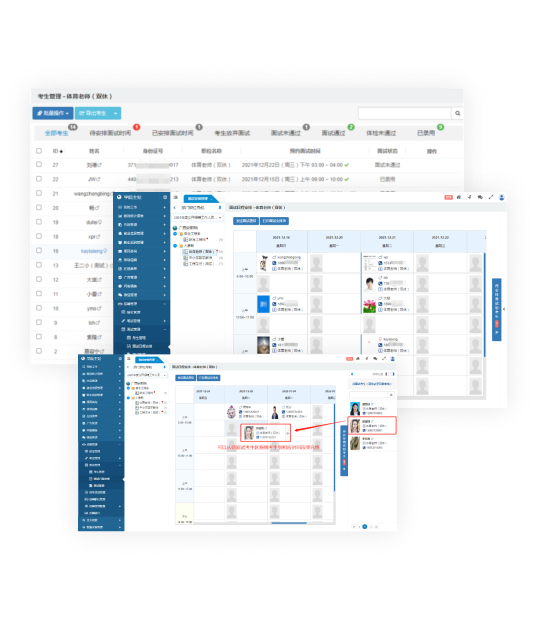 獨創(chuàng)的將組織面試環(huán)節(jié)加入到招考管理的全流程里,可對已通過筆試的考生在線安排面試。