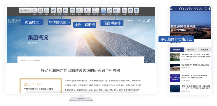 SmartCorporationPortal 是動(dòng)易基于 WebFuture 智慧門(mén)戶(hù)管理平臺(tái),為滿(mǎn)足大型國(guó)企、央企、集團(tuán)型企業(yè)的網(wǎng)站群集約化建設(shè)、信創(chuàng)適配、移動(dòng)適配、全媒體發(fā)布和監(jiān)測(cè)、無(wú)障礙改造和適老化建設(shè)等需求而量身定制的整套解決方案。