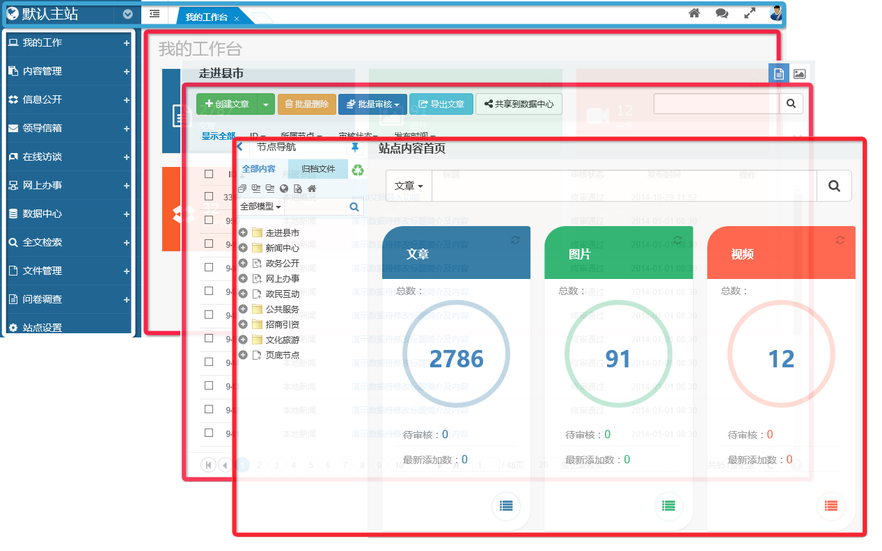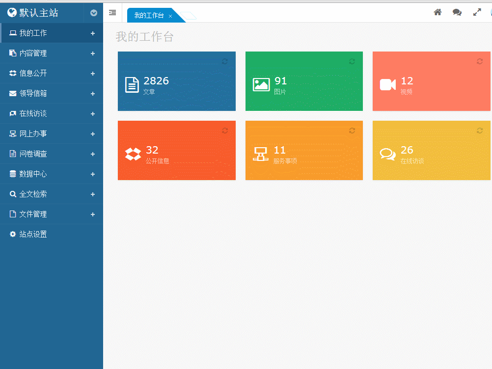在全新架構的動易SiteAzure中,我們決定拋棄舊交互界面,打磨出新的交互邏輯和視覺界面。新SiteAzure的管理界面將更加符合政府用戶實際交互需求和視覺感官需求。