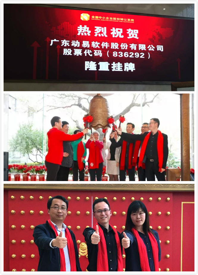 2016年4月21日,廣東動易軟件股份有限公司新三板掛牌儀式在全國中小企業(yè)股份轉(zhuǎn)讓中心成功舉行,標志著動易軟件正式登陸資本市場!