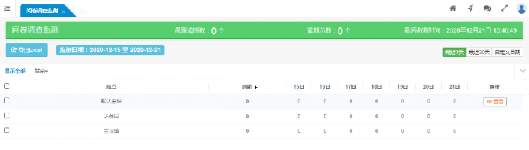 按站點(diǎn)顯示各站點(diǎn)的問卷調(diào)查活動(dòng)開展情況的監(jiān)測(cè)結(jié)果。