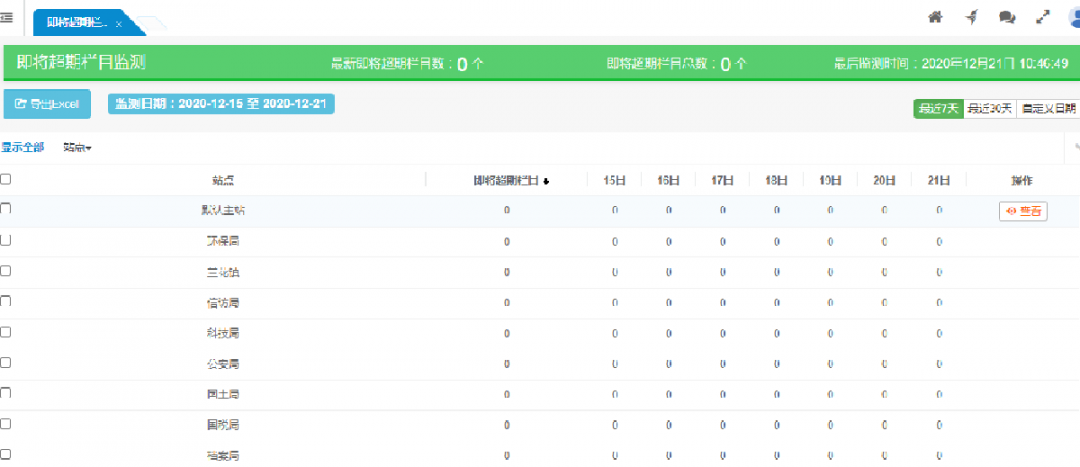 按站點(diǎn)顯示各站點(diǎn)的即將超期欄目監(jiān)測(cè)情況。