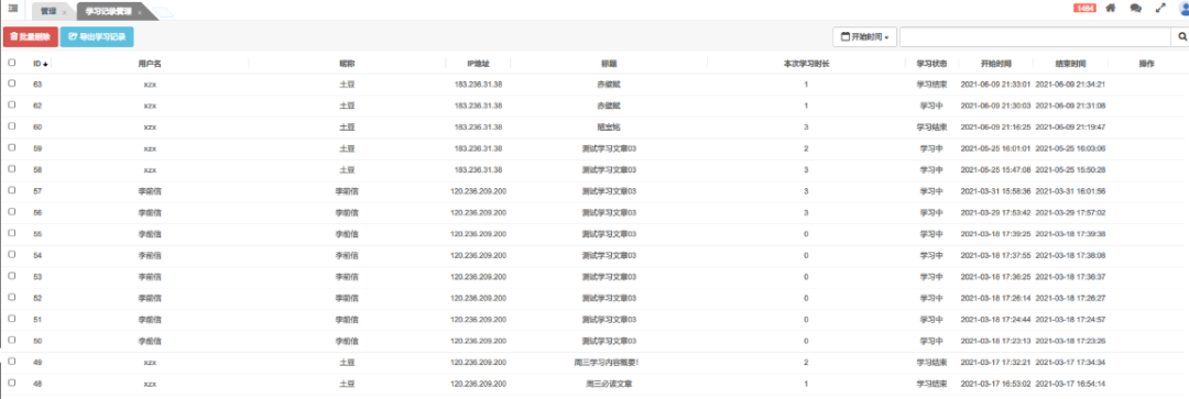 “學習情況統(tǒng)計”功能,可以統(tǒng)計指定用戶對指定學習資料的學習情況。還可以導出統(tǒng)計表數(shù)據(jù)到Excel中。