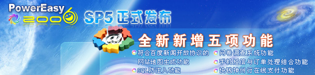 追求產(chǎn)品的盡善盡美是我們的共同愿望,打造超一流的網(wǎng)站管理系統(tǒng)是我們的共同目標(biāo)。經(jīng)過(guò)動(dòng)易開(kāi)發(fā)人員認(rèn)真的收集、整理、修復(fù)和測(cè)試,SP5已經(jīng)修復(fù)了SP4以來(lái)目前已知的40多項(xiàng)大、小BUG,有多處更新和改動(dòng)并經(jīng)過(guò)多方面運(yùn)行測(cè)試,系統(tǒng)更趨穩(wěn)定;集成了SP4后的3次安全更新和SQL防注入插件,系統(tǒng)更加安全;新增符合百度互聯(lián)網(wǎng)新聞開(kāi)放協(xié)議的網(wǎng)站地圖生成功能、SQL防注入功能、問(wèn)卷調(diào)查系統(tǒng)功能、手機(jī)短信與訂單處理結(jié)合功能、快錢神州行在線支付功能等新功能……