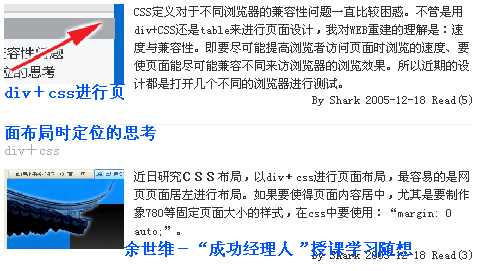 如果定義為“clear : both;”則本容器中的一行內(nèi)不允許其他對象有浮動(dòng)對象;如果定義為“clear : left;”則本容器中的左側(cè)不允許其他對象有浮動(dòng)對象。象“#ArticlePic”(縮略圖定義),其定義一般不能為“clear : right;”,否則文字就不能實(shí)現(xiàn)右環(huán)繞了。