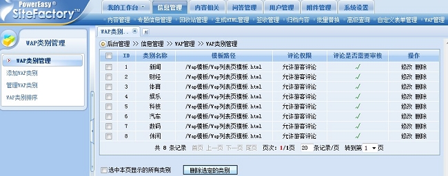 一.WAP類別管理功能