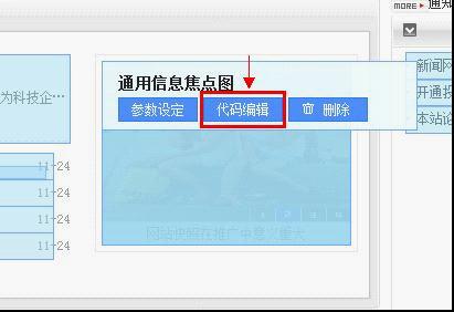 進入模板可視塊編輯頁面,鼠標移動到需要進行修改標簽參數(shù)的模塊上,頁面即出現(xiàn)“代碼編輯”選項,點擊出現(xiàn)代碼修改編輯框,修改后可在界面中看到實際效果。點擊“參數(shù)設(shè)定”選項。