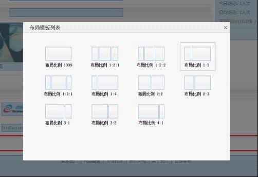 此外,布局容器也可以更換布局,鼠標移需要進行更換布局的布局模板中,頁面即出現(xiàn)“更改布局”選項,點擊即出現(xiàn)布局模板列表,選擇需要的布局,修改后可在界面中看到實際效果。