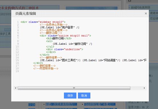 在模板可視塊編輯頁面,點擊頁面右上角“頁面元素管理”選項,隨后,用鼠標框選需要編輯的模塊,即出現(xiàn)該模塊的代碼修改編輯框,修改后保存即可在界面中看到實際效果。