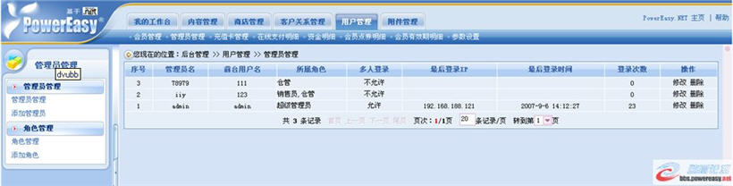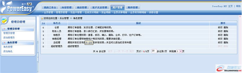 4.角色跟管理員是多對多的,修改一個角色的權(quán)限后,對應(yīng)的管理員的權(quán)限也會跟著改變,這就大大方便了每個管理員的權(quán)限分配、設(shè)置和修改,可以實現(xiàn)批量設(shè)置管理員角色和權(quán)限。而不像2006版那樣想要修改某個權(quán)限時候必須一個一個管理員或者管理員組去設(shè)置。