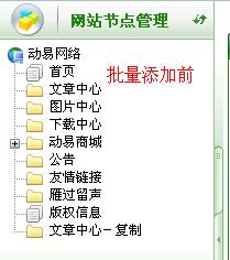 通過上面的介紹,新的SiteFactory?CMS1.1版本的節(jié)點/專題批量添加以及節(jié)點復制功能,使得新建一個網站時,相似相同的欄目結構可以大量增加,構建網站目錄結構的速度是原來的N倍。而以后要修改節(jié)點屬性時,系統(tǒng)也就提供了相應的批量設置功能,可以說SiteFactory?一切都為了網站管理員!