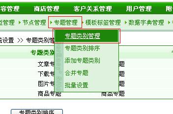 首先我們通過頂部導航,進入“系統(tǒng)設置”——“專題管理”并點擊進入“專題類別管理”:
