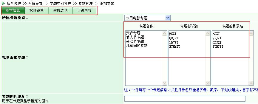點擊“批量添加專題”后,就進入到了添加界面,其他操作和節(jié)點添加是一樣的: