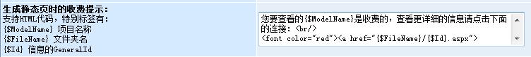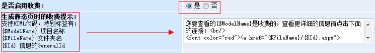 特別需要推薦一下的是動態(tài)頁面的收費提示信息是可以在后臺修改的哦!我們先進入”模型管理“,打開”文章模型“,在配置中我們就可以對”收費提示“進行修改了,如圖: