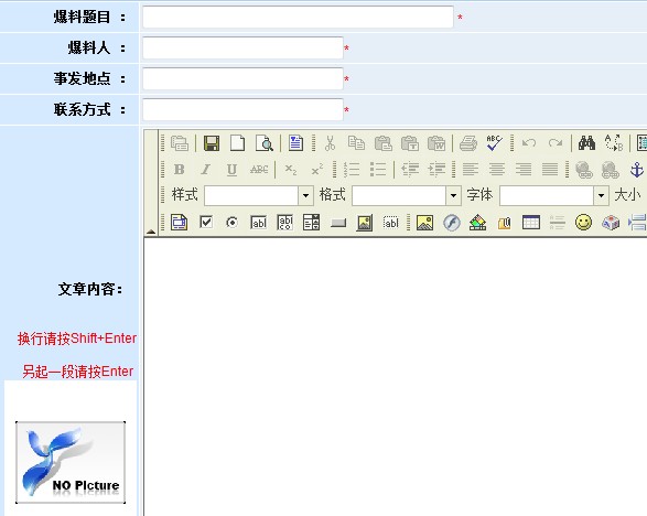 后臺管理員處理信息:爆料人、事發(fā)地點、聯(lián)系方式、是否處理、采納說明、稿費金額、爆料內(nèi)容。