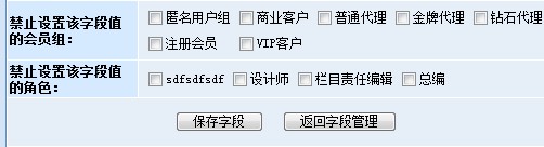 此途徑可以通過用戶管理中的“角色管理”和“會員組管理”來設(shè)置相應(yīng)的字段權(quán)限。先來看一下動易SiteFactory? 新增加的“匿名投稿用戶組”的權(quán)限設(shè)置截圖: